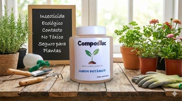 Control de plagas efectivo y 100% seguro para tus plantas. El Jabón Potásico Compostuc es un insecticida ecológico que actúa por contacto. Es la solución ideal para combatir plagas comunes en tu huerta o jardín sin utilizar químicos agresivos, garantizando que sea seguro para tus plantas y el entorno.
